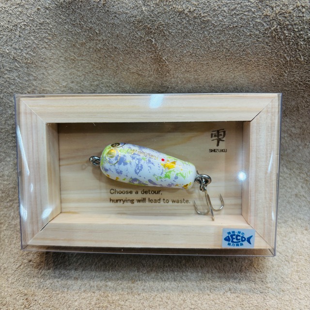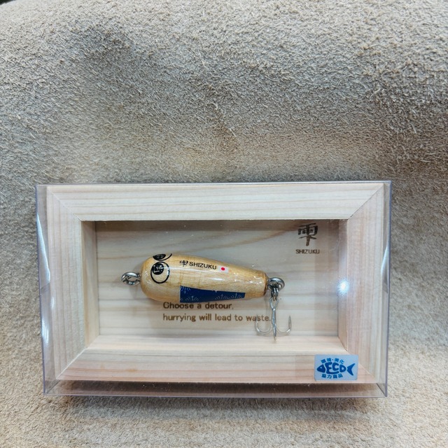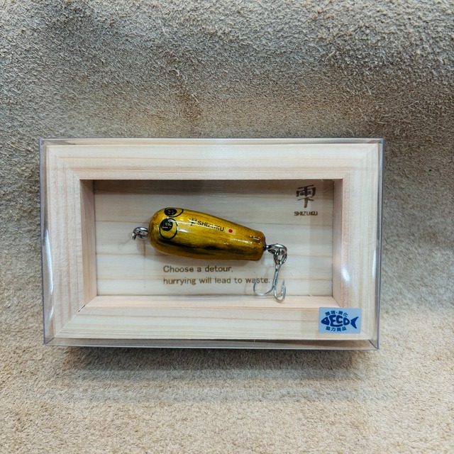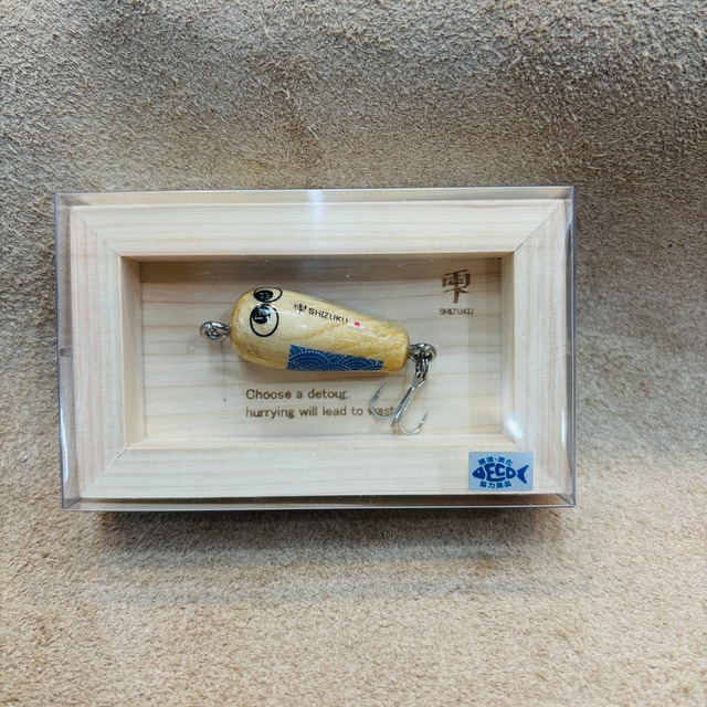 岩嵜 IWASAKI – 「生まれ変わる素材、生まれ変わる価値。」 IWASAKI ブランドは、「再生」をテーマに掲げ、素材に新たな命を吹き込むことで新しい価値を生み出すことを目指しています。 その第一弾として誕生したのが、流木から生まれた可愛らしいルアー 「雫(シズク)」 です。 私はこれまで、使われなくなった素材を蘇らせることに情熱を注いできました。代表作であるバスロッド 「WEEDMASTER」 をはじめ、日々の仕事ではロッドの修理・カスタム、リールのオーバーホールなど、「復活」と「再生」をテーマに活動しています。 そして今回、新たな挑戦として、琵琶湖の水辺清掃中に目にする流木を再生し、ルアーとして生まれ変わらせました。 この 流木ルアー「雫」 を通じて、琵琶湖の魅力を世界に発信し、日本の皆さんには釣りの楽しさや夢を届けられたらと思っています。 この「雫」は、琵琶湖の流木を一つひとつ削り出して生まれた一点物でございます。 自然が刻んだ木目、色合い、節の表情は二つとして同じものはなく、 それぞれが湖の時間を纏った、世界にひとつだけの姿をしております。 写真とまったく同じ表情のものはお届けできませんが、 それこそが「雫」が“工業製品ではない証”であり、 あなただけの一滴との出会いでございます。 どうぞよろしくお願いいたします。 ※自然素材を使用しているため、木目・色味・形状には個体差がございます。 あらかじめご了承のうえ、一期一会の出会いをお楽しみください。 岩嵜雫(イワサキシズク) – ルアーパッケージモデル • ルアー本体:3.5cm • 専用檜枠付き ※ アクセサリーモデルとして、ネックレスやキーホルダーもご用意。その他のカラーも順次発売予定です。 IWASAKI – “Reborn Materials, Reborn Value.” The IWASAKI brand is founded on the theme of “rebirth”, breathing new life into materials to create new value. Our first creation is the driftwood lure “Shizuku” (雫)—a charming fishing lure born from reclaimed driftwood. I have long been passionate about reviving unused materials. My representative work, the bass rod “WEEDMASTER,” is a testament to this dedication. In my daily work, I focus on rod repairs, customizations, and reel overhauls—activities centered around restoration and renewal. For my latest challenge, I have transformed driftwood collected during shoreline cleanups at Lake Biwa into handcrafted lures. Through the driftwood lure “Shizuku,” I hope to share the beauty of Lake Biwa with the world while inspiring anglers across Japan with the joy and excitement of fishing. This “SHIZUKU” is a one-of-a-kind piece, carefully carved from driftwood collected from Lake Biwa. Each grain, color, and natural marking is shaped by time, and no two are ever the same. Every piece carries the quiet history of the lake, making it truly unique in the world. Please note that the exact appearance may differ from the photographs. This individuality is the very proof that SHIZUKU is not an industrial product, but a personal encounter with a single drop made just for you. Thank you for your support. Please note that as natural materials are used, each piece will vary in grain, color, and shape. We kindly ask for your understanding and hope you enjoy this once-in-a-lifetime encounter. Iwasaki Shizuku – Lure Package Model • Lure size: 3.5 cm • Comes with a custom-made hinoki (Japanese cypress) frame ※ Also available as an accessory model in the form of necklaces and keychains. Additional color variations will be released soon.